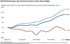 But what will happen if the S&P 500 is at an all-time high. Since 1984, the Fed has cut rates 28 times when the S&P 500 was within 3% of an all-time high. After the rate cut, the market pumped an average of 13% in 1 year. Also, whenever this situation happened, the market pumped 93% of the time.